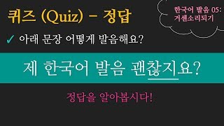 한국어 발음 05: 퀴즈 정답 - "제 한국어 발음 괜찮지요?"- Learn Korean