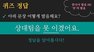 한국어 발음 퀴즈 정답 08: '못'의 발음 - "상대팀을 못 이겼어요." Learn Korean