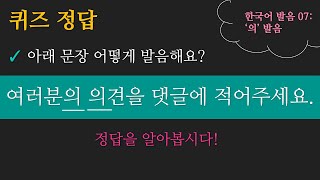 한국어 발음 07: '의' 발음 퀴즈 정답 - "여러분의 의견을 댓글에 적어주세요." Learn Korean